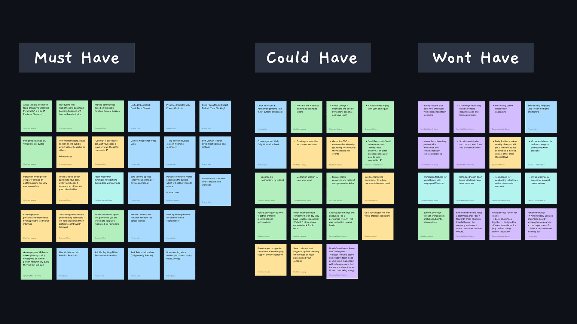 The Red Hat team resonated with the desk customization feature — calling it a unique, untapped space. Akshay suggested integrating it with the system wallpaper for a seamless experience, reducing the friction of opening an app. He said to add more functions to the desk so that people keep going there. He also appreciated the icebreaker prompts, especially for people who struggle to start conversations. Others liked the bonding potential of cubicle personalization, but felt some users may skip customizing it — and recommended making it a default onboarding step to drive adoption.