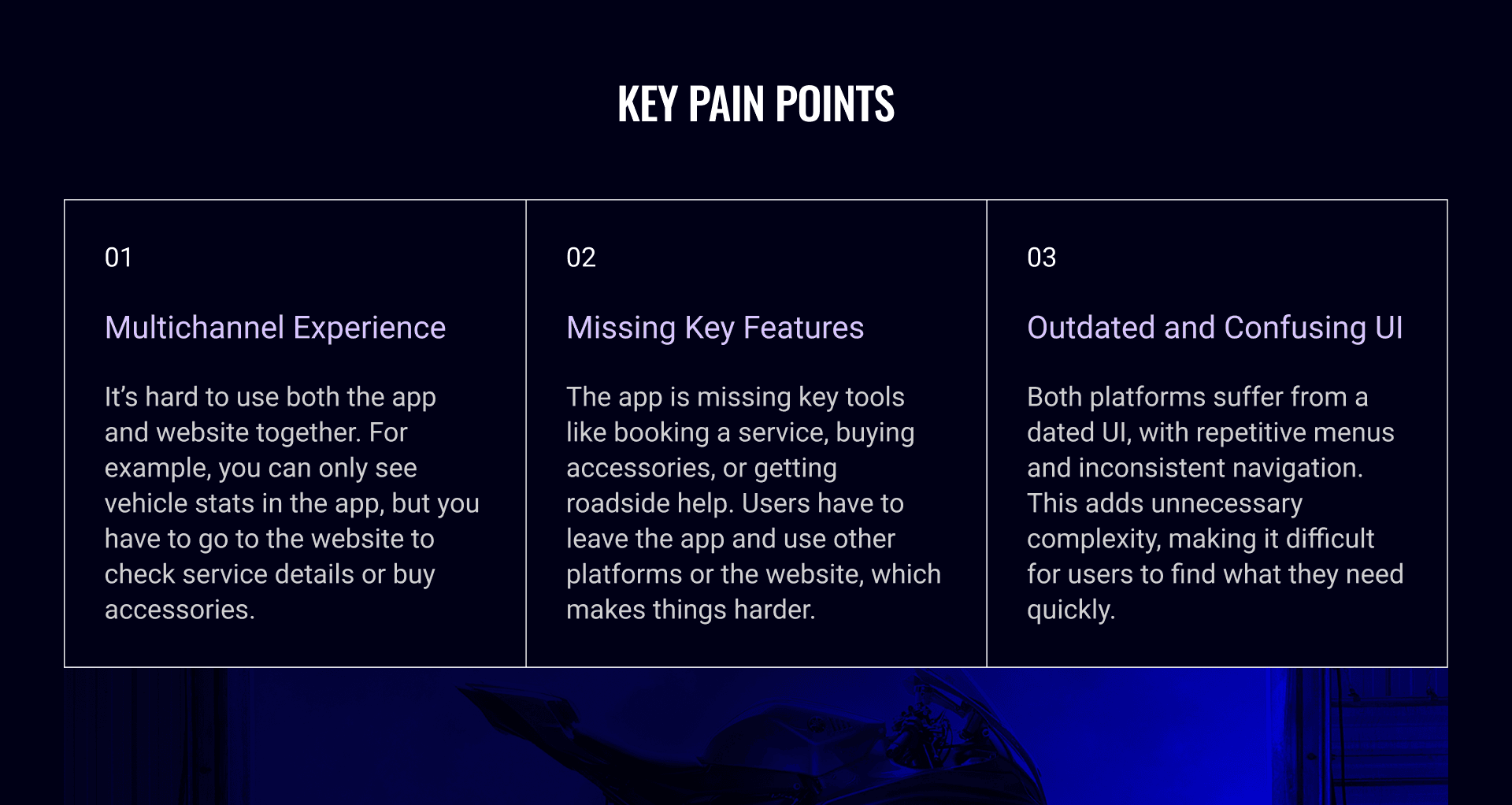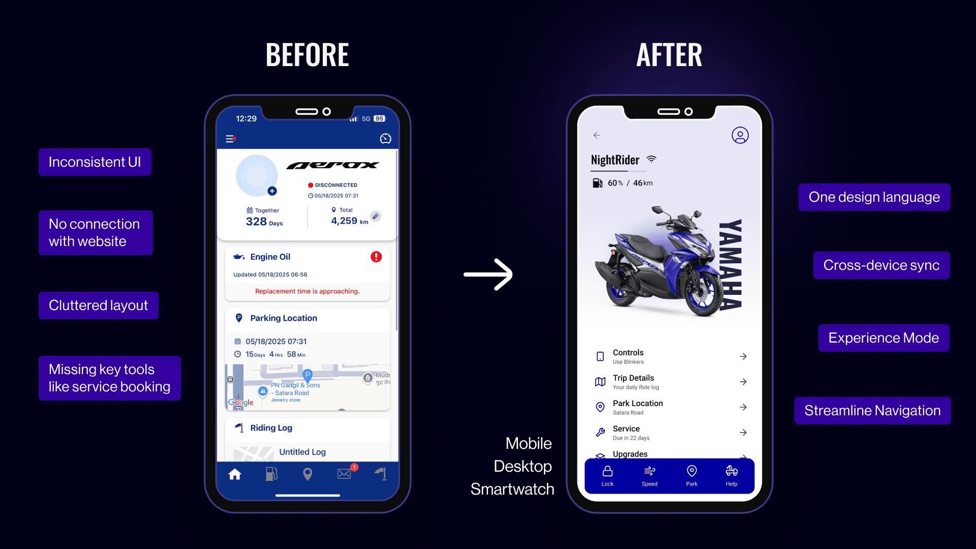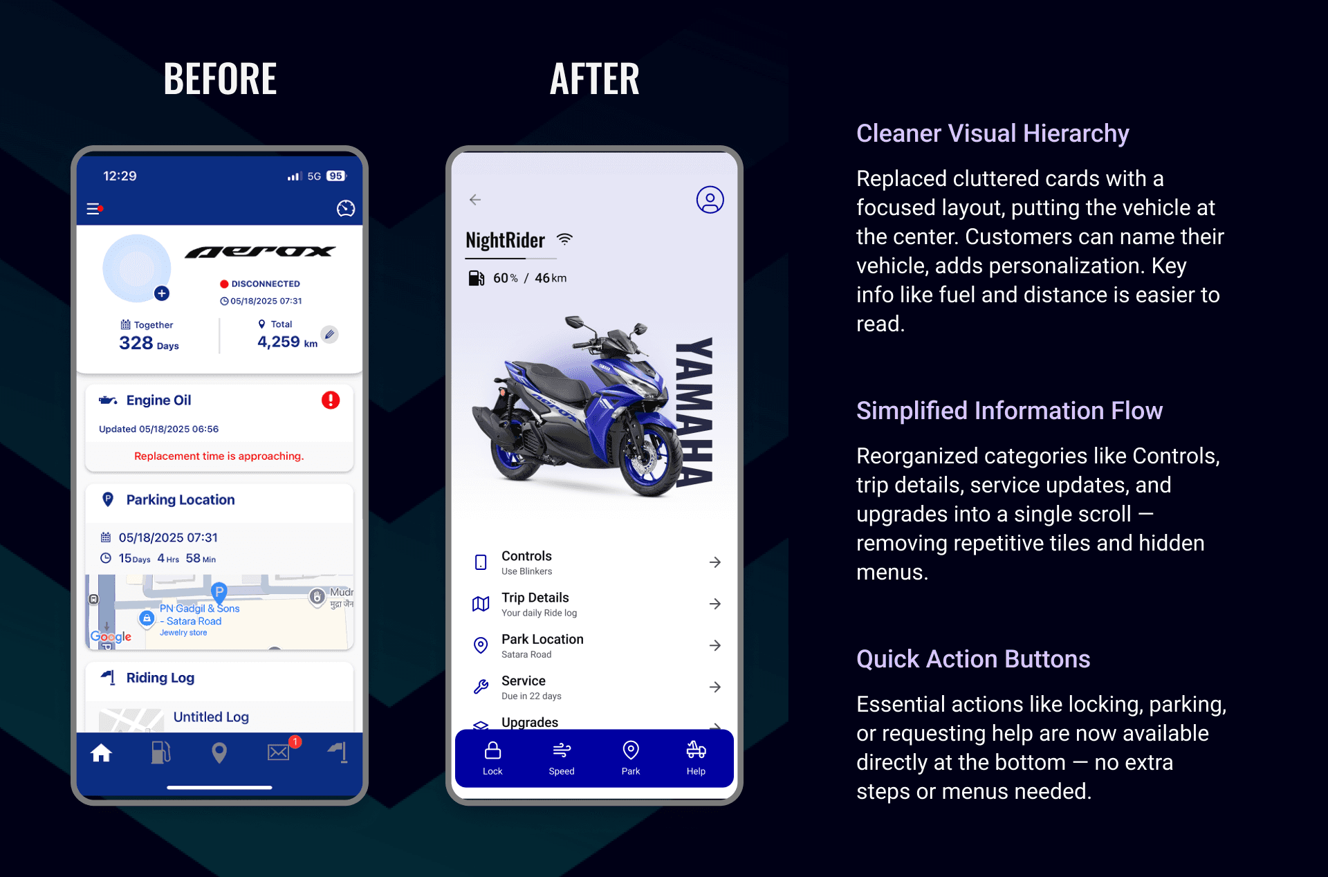 Listening to Yamaha vehicle owners helped understand what really matters after buying a bike. Many shared similar complaints — from missing app features to confusing navigation.